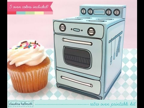 make a retro oven printable cupcake box, treat and party favor gift box - Printable Oven Cupcake Box - Available in my Etsy store here: http://www.etsy.com/shop/claudinehellmuth My paper printable kits can be used as party favor boxes, gift boxes, party ...