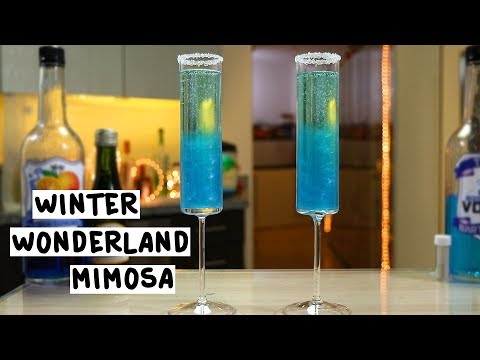 Winter Wonderland Mimosa - Blue Curacao And Champagne - Here's the recipe: WINTER WONDERLAND MIMOSA 1 1/2 oz. (45ml) Blue Raspberry Vodka 1/2 oz. (15ml) Blue Curacao 4 oz. (120ml) Champagne Sprinkle ...