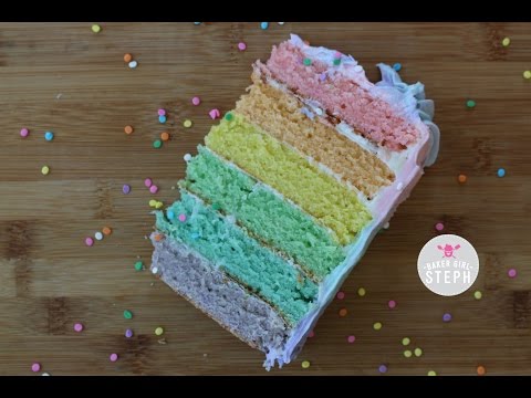 Rainbow Cake With White Icing }}- First video, yay! How to make a pastel rainbow cake with a pastel ombré frosting. You can make this your own and choose the colors for both the cake and ...